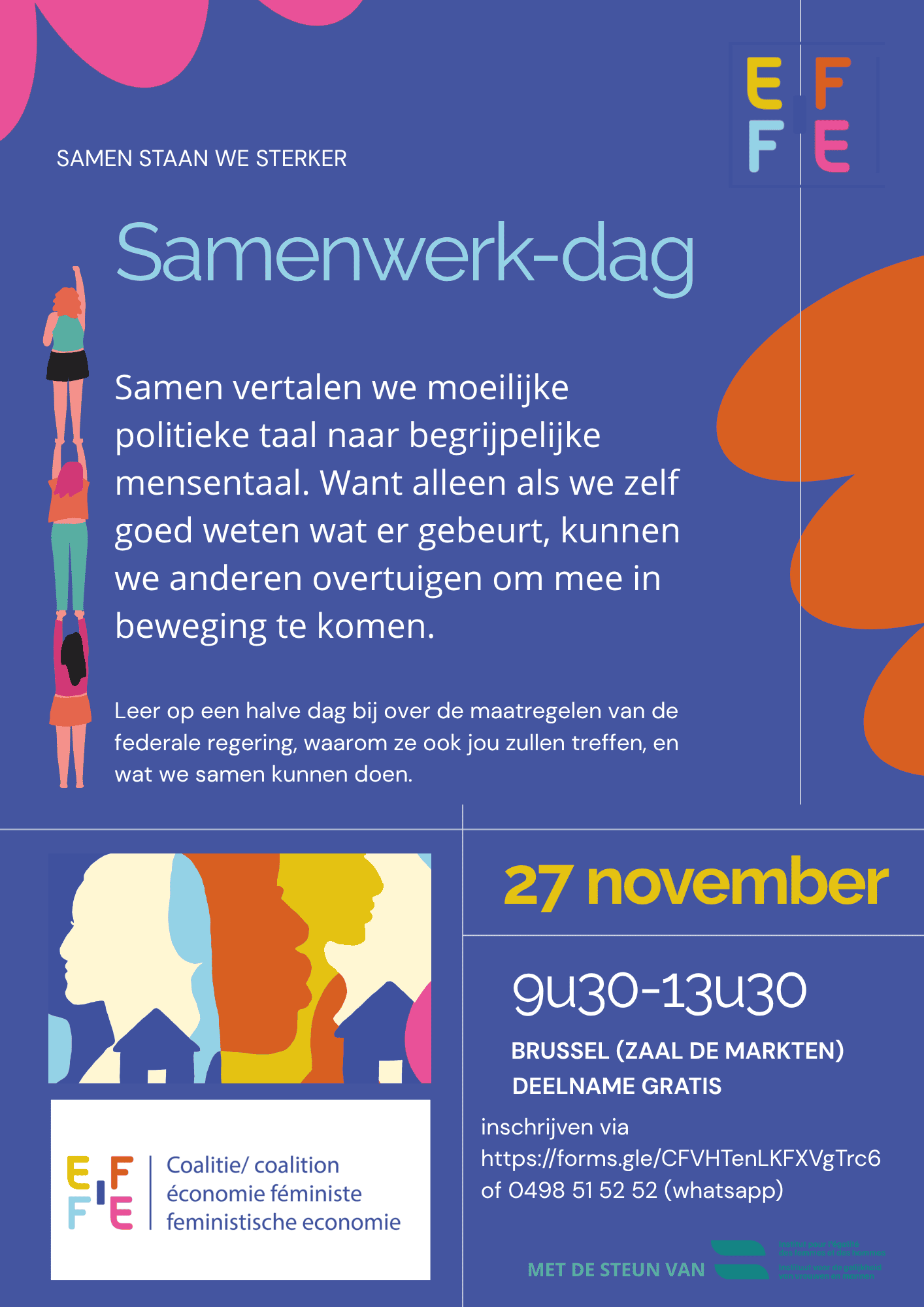 We maken beleidsanalyses, we laten van ons horen, we voeren actie (we waren erbij op 14/10 met 140.000 anderen in Brussel!), en er is nog meer nodig: